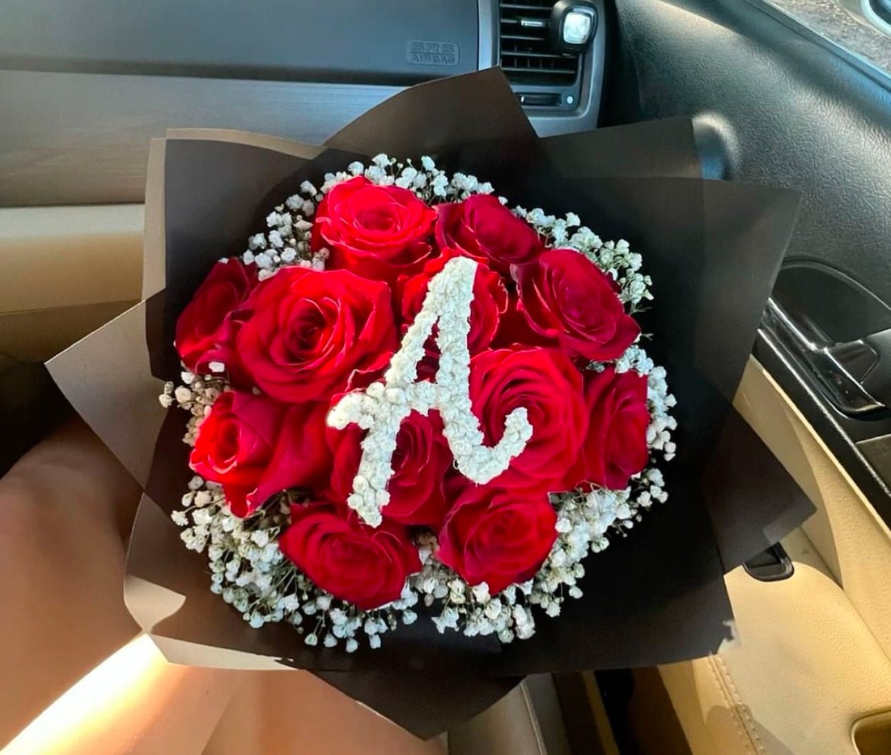 The bouquet of 12 roses available only with number or letter, does not include crown